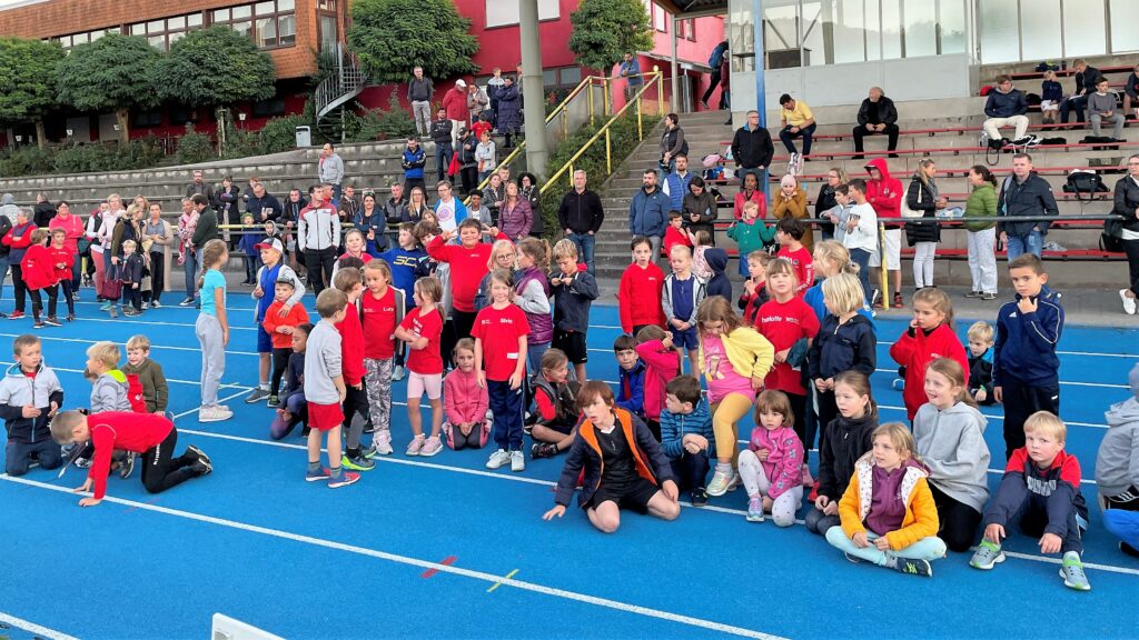 Che – Die Pokale glänzten in der Abendsonne des Aumattstadions, blau, rot und golden. „Die sind aber toll, so einen möchte ich auch haben“, sagte vierjährige Melina mit großer Begeisterung. Aber etwas Lampenfieber hatte sie schon vor ihrem ersten Start bei einem richtigen Wettkampf. Beim Power-Checken von SCL Heel Baden-Baden und Sparkasse geht es auch ordentlich zur Sache: Vier Wettbewerbe innerhalb von zwei Stunden mit Sprint, Weitsprung, Ballwurf und Langlauf fordern schließlich alle Power und Kraft.