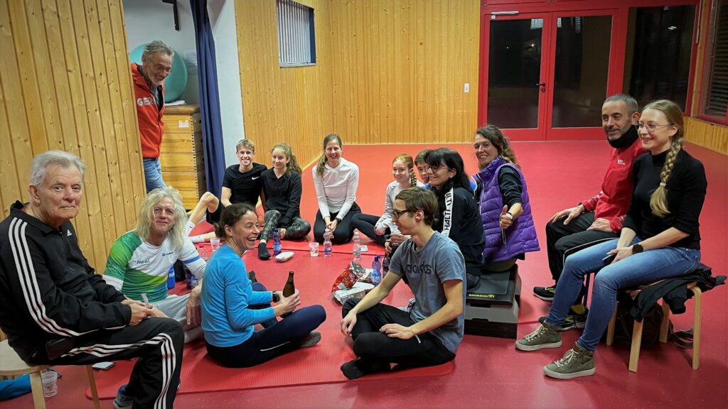 Nach Sprint- und Staffeltraining Entspannung auf dem Weihnachtsmarkt: v.l. Gianmarco Gibilisco, Heiko Gussmann, Michael Schnepf, Udo Metzler, Mikaelle Assani, Christin Rodinger und Sophia Striebel. Hallen-Saison-Start ist am 8. Januar in SaarbrückenLagebesprechung nach dem Langlauf-Training: v.l. Arne Haase, Marcus Siegle, Stephan Schürer, Elke Wagner Enno Wallhorn, Skadi Didillon, Simone Didillon, Smilla Didillon, Felix Baillard, Felician Schnepf, Nicole Bauer-Köhler, Birgit Marzluf, Emilio Patruno und Susanne Graf. Hallen-Saison-Start: 21. Januar Sindelfingen.