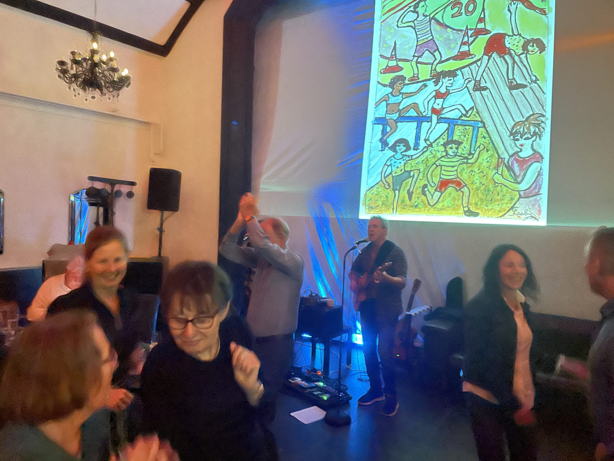 Sport und Kunst gingen schon in der Antike eine heldenhafte Verbindung ein. In Marmor gemeißelte Ringer, auf Tonkrügen gezeichnete Läufer. Zum 20. Geburtstag hat nun die Künstlerin Christiane Raab ein expressiv-popartiges Gemälde geschaffen, das den Verein gut trifft: Luftig, leicht, fröhlich und vielseitig. Stück für Stück wurde das Bild präsentiert, mit antiken Vergleichen, bis das Werk unter großem Beifall komplett enthüllt wurde.