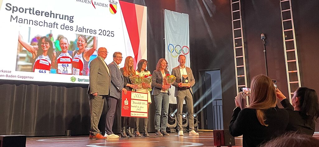 Che – Damit hatten sie nun überhaupt nicht gerechnet: Die Deutschen 3 x 800 Meter Meisterinnen von Hamburg sind nun Mannschaft des Jahres 2025. Gekürt wurden Susanne Graf, Nicole Bauer-Köhler und Elke Wagner im Rahmen der jährlichen Sportlerehrung von Stadt und Sportausschuss in der Eventakademie. Überreicht wurden die Medaillen vom 1. Bürgermeister Alexander Wieland und Armin Zeitvogel, dem Präsidenten des Sportausschusses der Vereine.