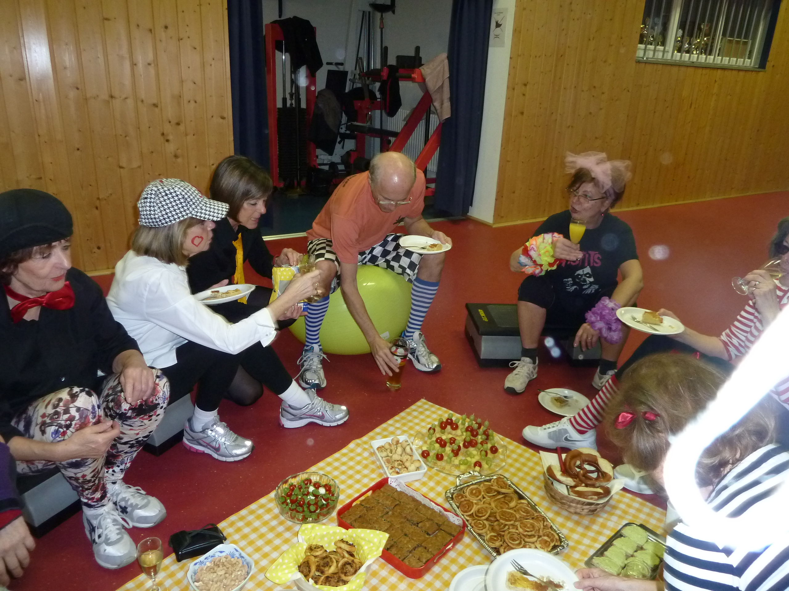 Es geht auch lustig: Beim Training der Body-Fit-Gruppe von Heidrun Rosch in der SCL Heel Halle ging es an Fasnacht bunt fröhlich zu. Auch die Narren können die Muskeln spielen lassen. Das Training in netten Kostümen und anschließend fröhliches Beisammensein.